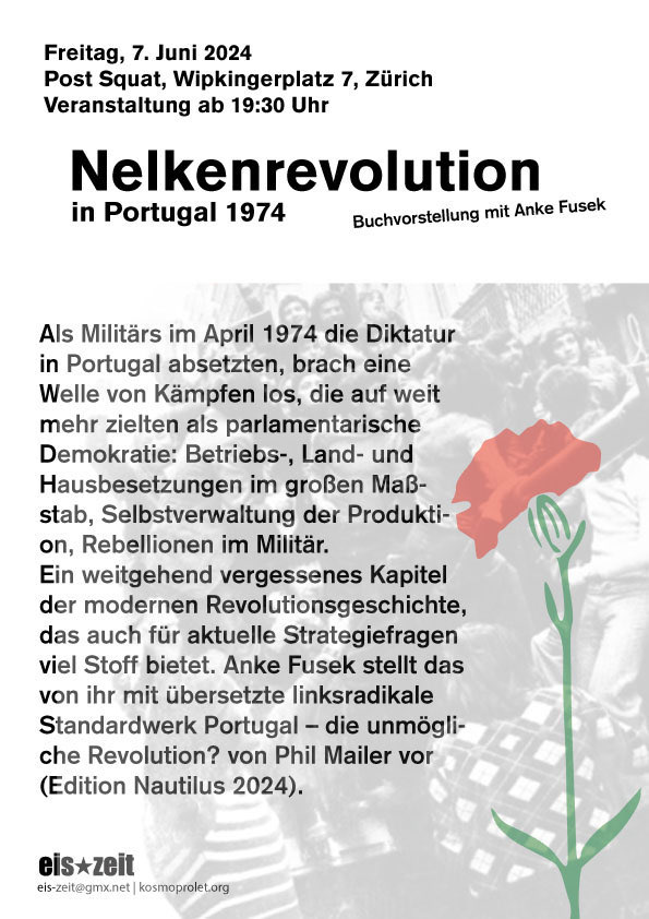 Als Militärs im April 1974 die Diktatur in Portugal absetzten, brach eine Welle von Kämpfen los, die auf weit mehr zielten als parlamentarische Demokratie: Betriebs-, Land- und Hausbesetzungen im großen Maßstab, Selbstverwaltung der Produktion, Rebellionen im Militär. Ein weitgehend vergessenes Kapitel der modernen Revolutionsgeschichte, das auch für aktuelle Strategiefragen viel Stoff bietet. Anke Fusek stellt das von ihr mit übersetzte linksradikale Standardwerk Portugal – die unmögliche Revolution? von Phil Mailer vor (Edition Nautilus 2024).